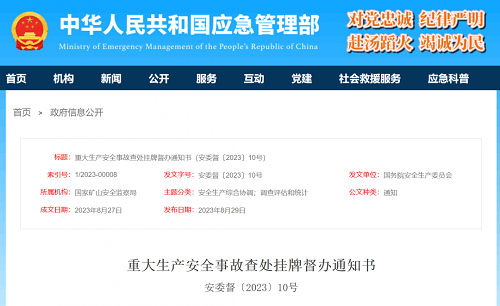 2、8月29日消息,國(guó)務(wù)院安全生產(chǎn)委員會(huì)發(fā)布重大生產(chǎn)安全事故查處掛牌督辦通知書(shū)。8月21日,陜西省延安市延川縣新泰煤礦發(fā)生一起重大瓦斯爆炸事故,造成11人遇難、11人受傷。根據(jù)《重大事故查處掛牌督辦辦法》,國(guó)務(wù)院安委會(huì)決定對(duì)該起重大事故查處實(shí)行掛牌督辦。