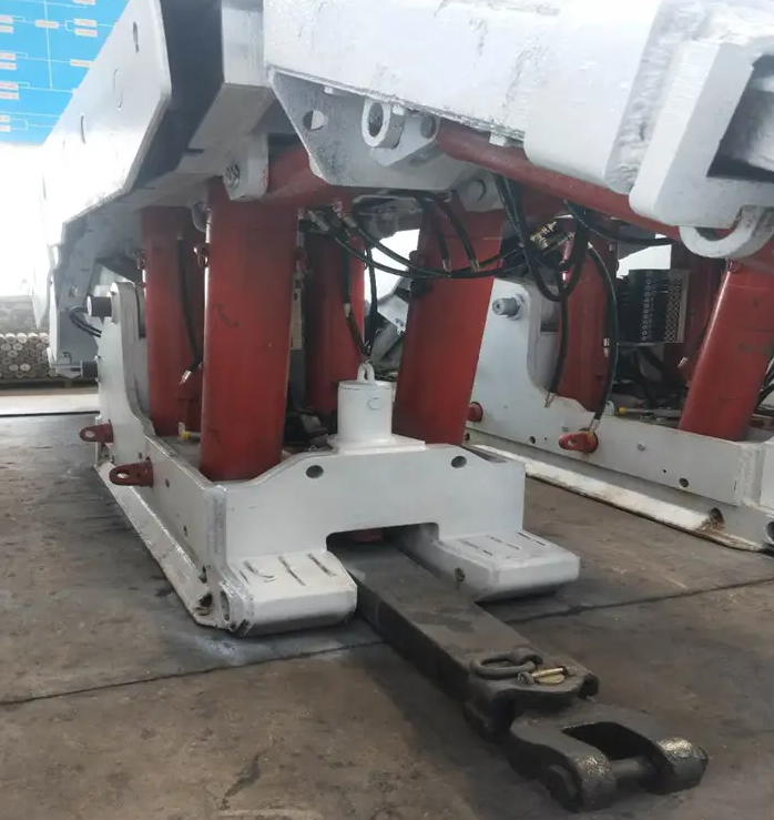 移后溜千斤頂、軟鏈通過連接座、銷軸等與后溜連接,通過移后溜千斤頂?shù)纳炜s拉移后溜。
