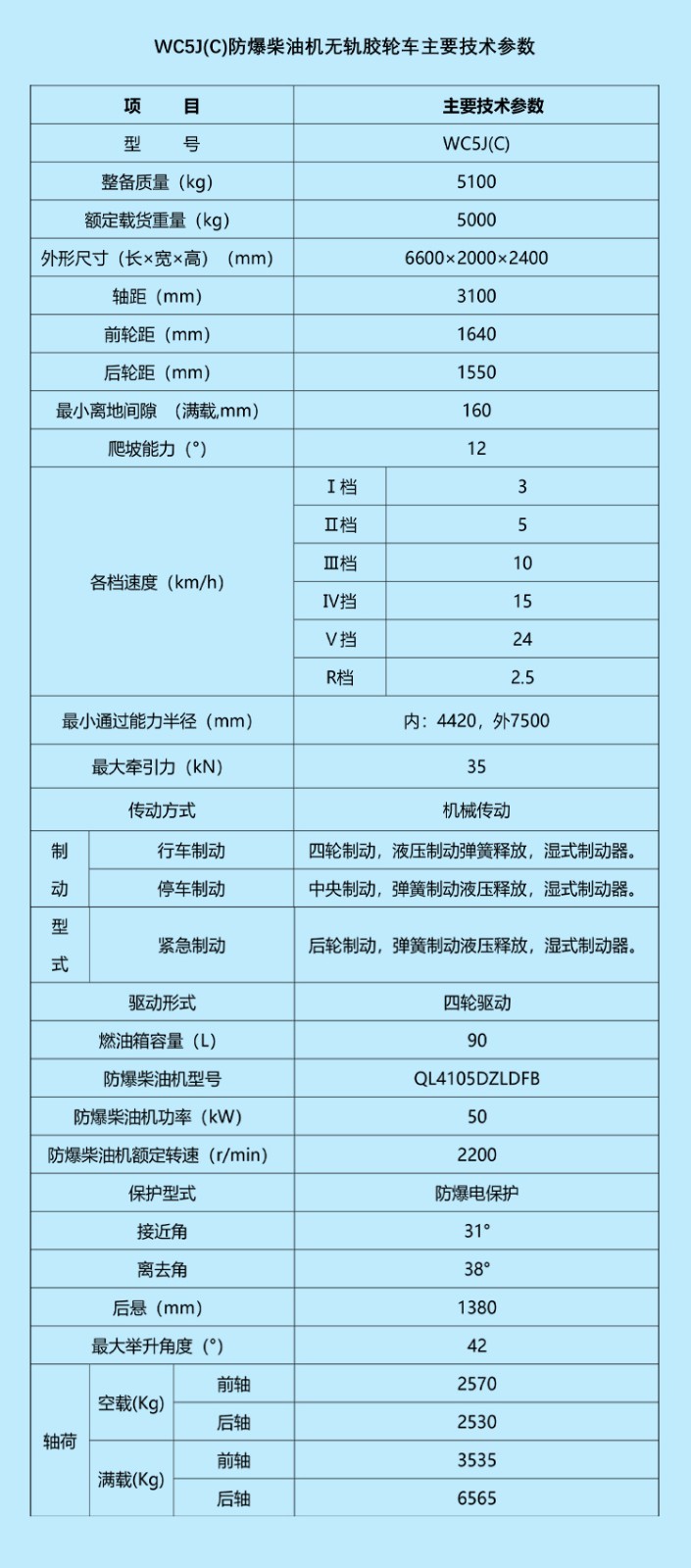 - 產(chǎn)品名稱:WC5J(C)四驅(qū)防爆柴油機(jī)無軌膠輪車