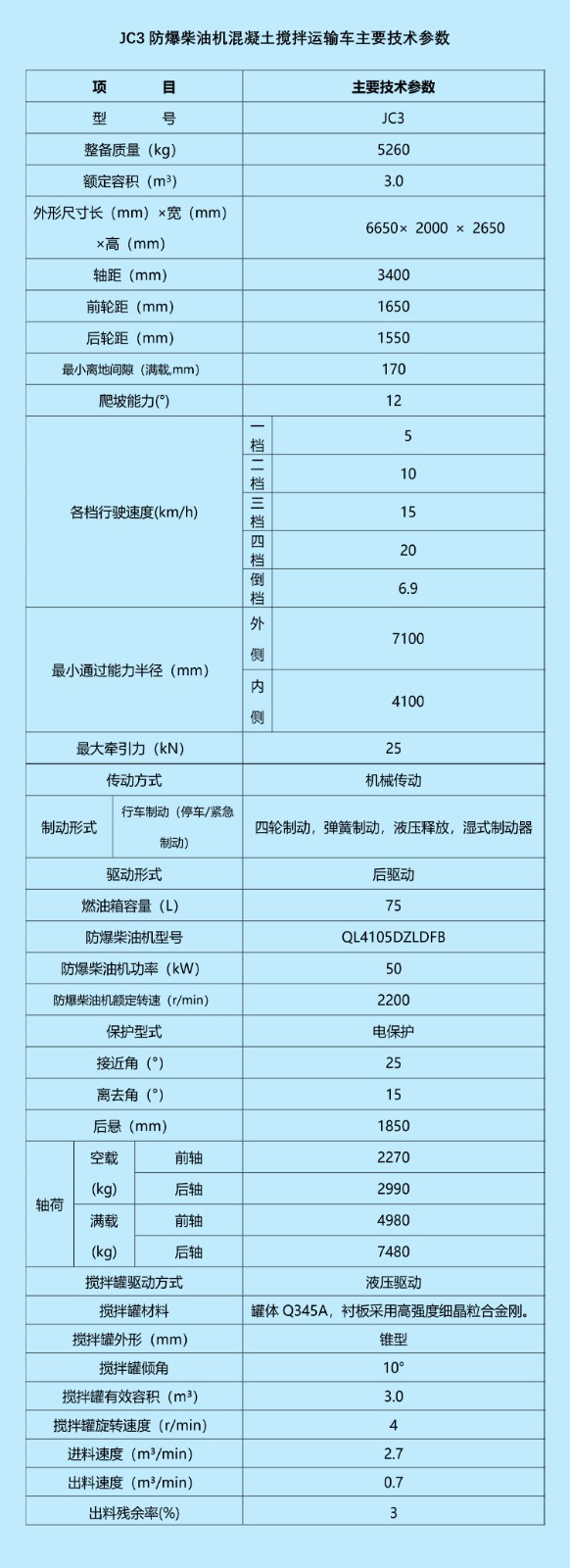 - 產(chǎn)品名稱:JC3.0防爆柴油機(jī)混凝土攪拌運(yùn)輸車