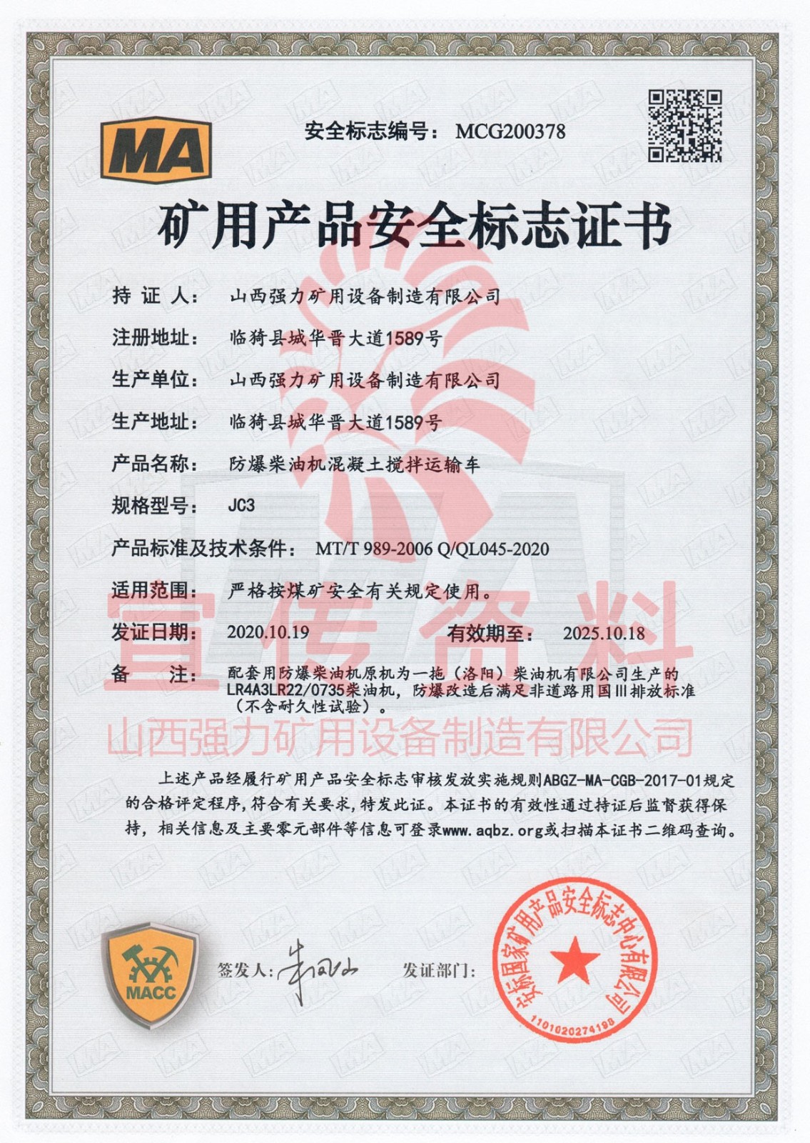 2、動(dòng)力采用我公司研發(fā)的國三QL4105DZLDFB防爆發(fā)動(dòng)機(jī),增壓中冷、電控高壓共軌噴射,動(dòng)力強(qiáng)勁,達(dá)到國三排放標(biāo)準(zhǔn)。