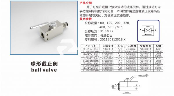 球形截止閥用于可允許或阻止液體流動(dòng)的液壓元件。 通過扳動(dòng)方向手把控制球閥的轉(zhuǎn)向閉合,本閥的作用是控制液壓支路高壓液的開啟與關(guān)閉,方便液壓支路檢修。