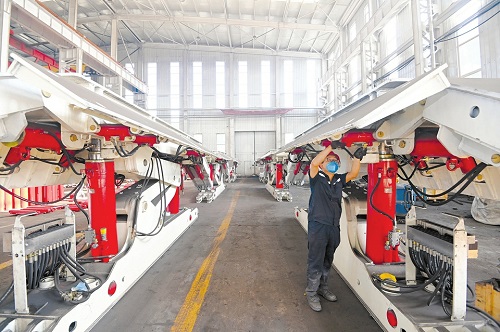 8、9月18日,朔州金華實(shí)業(yè)有限公司內(nèi),工作人員正在檢修改造煤礦機(jī)械。