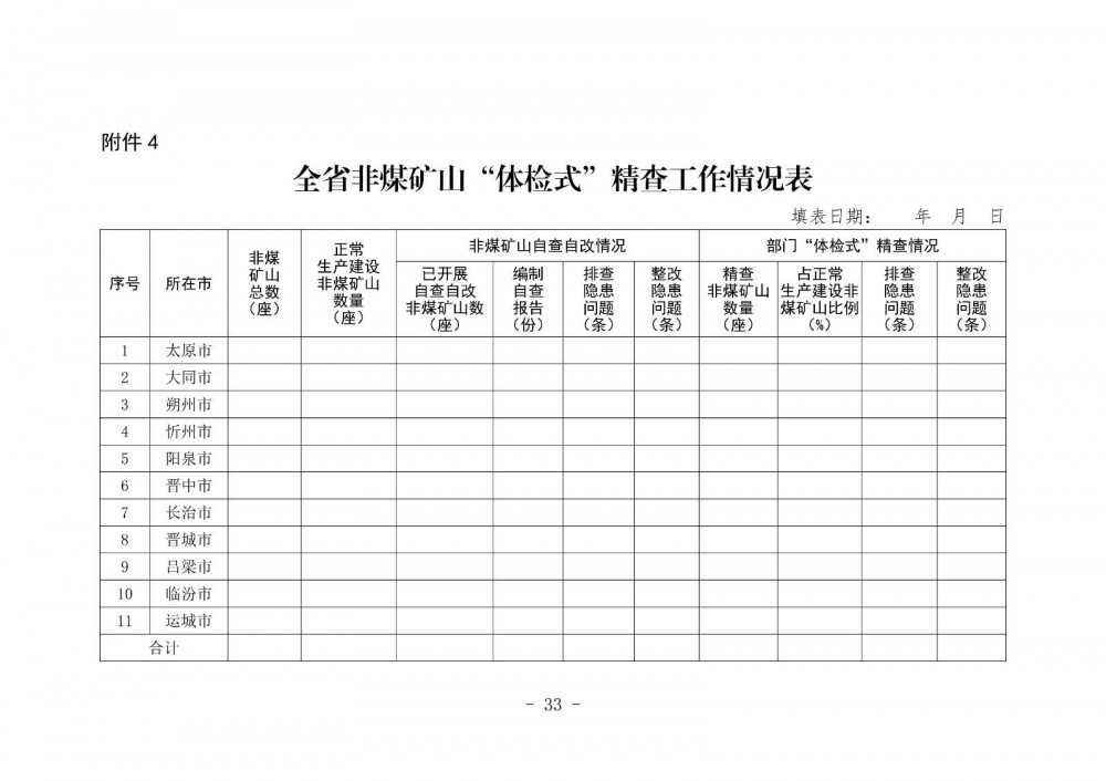 4.全省非煤礦山“體檢式”精查工作情況表