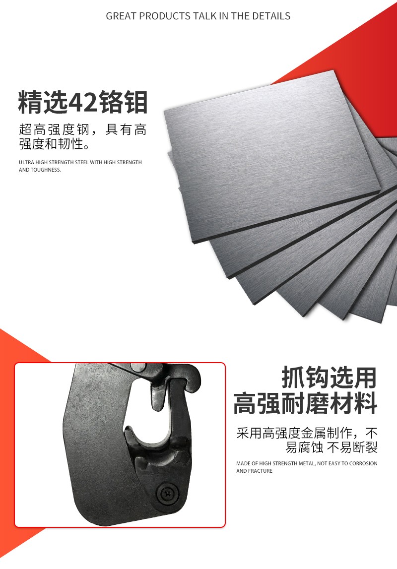 該脫鉤器主要用于礦井防墜試驗作業(yè),各部位軸件及滾輪、鉤爪均選用高強耐磨材料,經(jīng)過精密加工、嚴(yán)格檢驗,使用安全可靠,簡便省力。