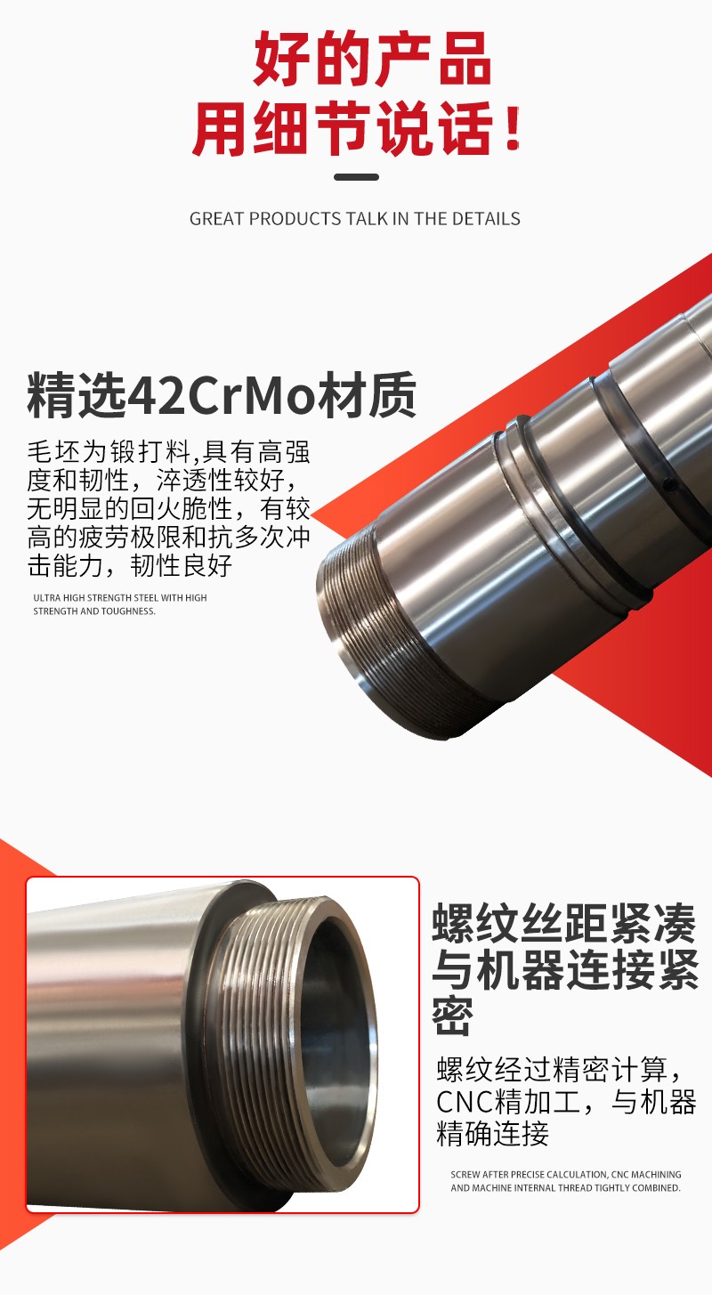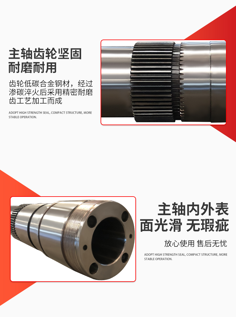 在鉆探作業(yè)中,動力頭主軸需要承受高強(qiáng)度的旋轉(zhuǎn)運(yùn)動和沖擊負(fù)載。因此,其合理的結(jié)構(gòu)設(shè)計(jì)和材料選擇是保障其長期可靠工作的關(guān)鍵。煤礦鉆機(jī)配件動力頭主軸通常采用高強(qiáng)度合金鋼鑄造,經(jīng)過淬火處理后具有較高的硬度和韌性,可有效抵御磨損和變形。